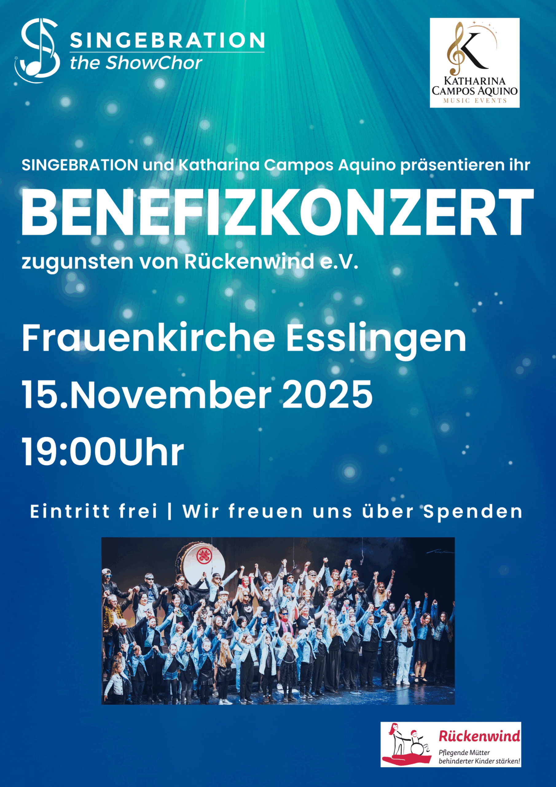 Unser diesjähriges Kirchenkonzert ist für Rückenwind e.V. aus Esslingen. Der Eintritt ist frei, Spenden sind erbeten.